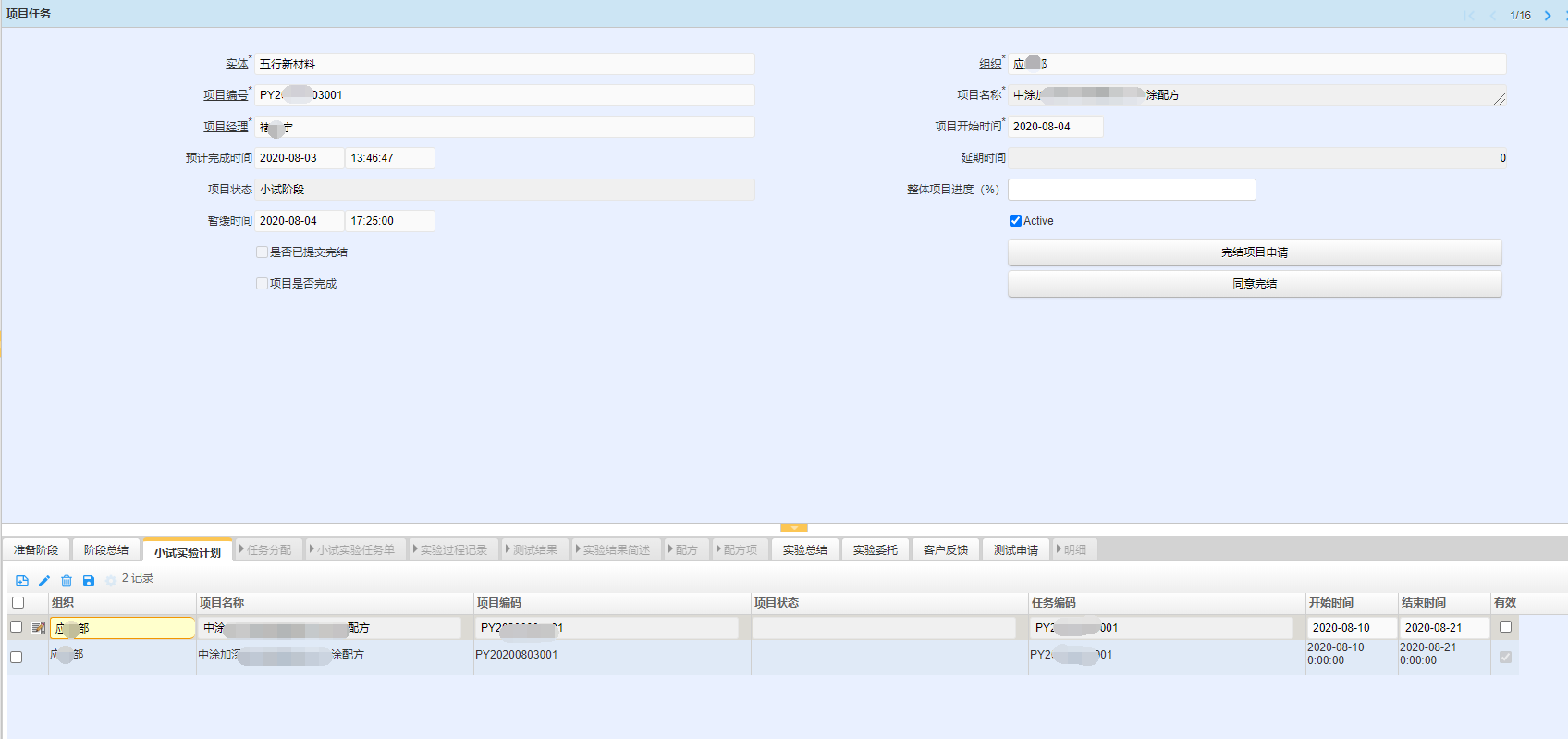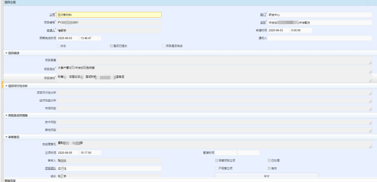 2020年8月11日,經過雙方的共同努力,廣州五行材料科技有限公司研發管理系統,正式上線運行,項目共建設了基礎數據、項目團隊定義、項目維護、項目立項、小試流程、中試申請、中試流程、經驗數據庫8大功能模塊可以有效實現項目的管理,提高項目的規范對已經進行過的項目可進行數據的積累與分析,同時可幫助后續項目借鑒學習,減少企業研發過程中的重復實驗的情況