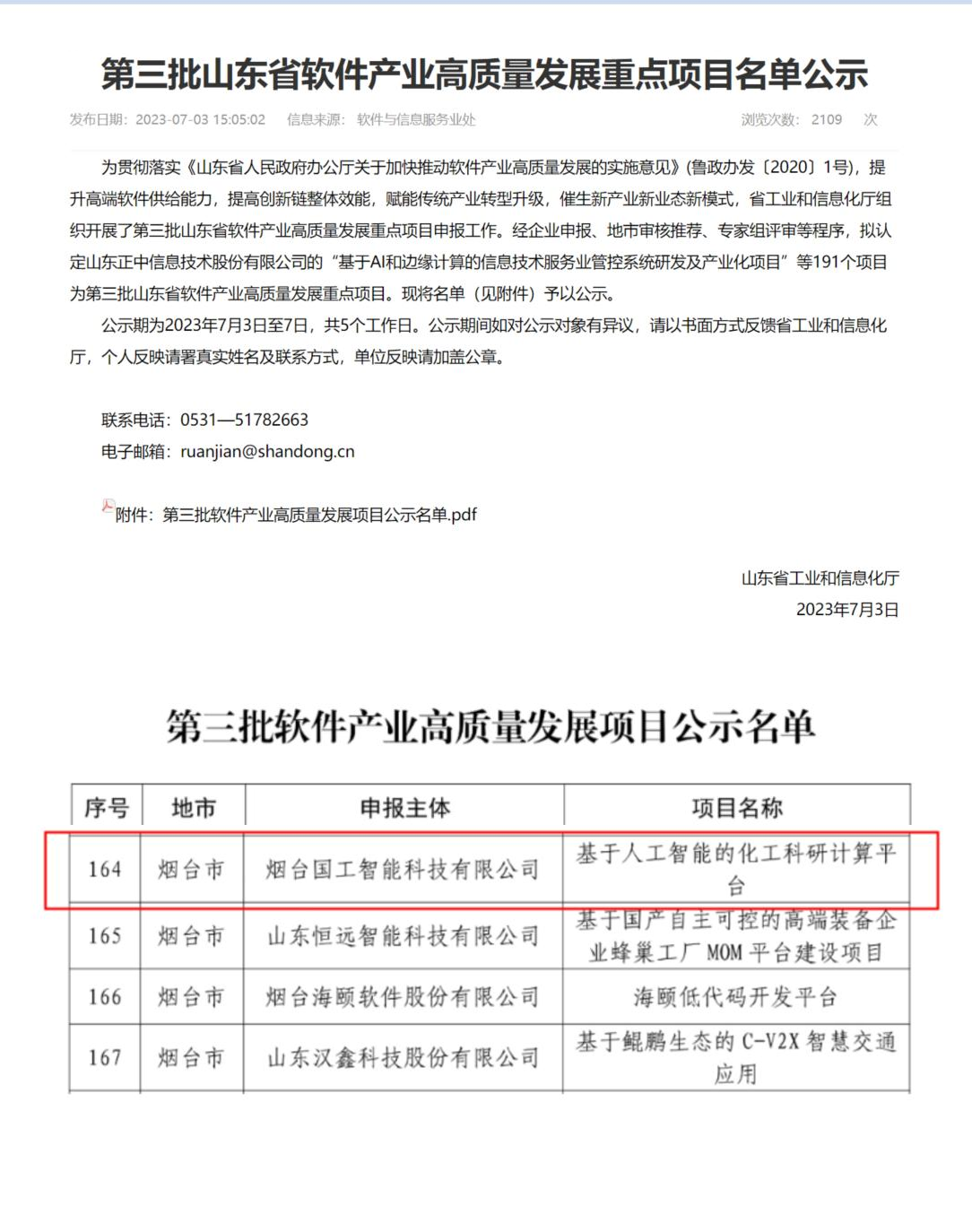 7月3日,省工信廳公示了第三批山東省軟件產(chǎn)業(yè)高質(zhì)量發(fā)展重點(diǎn)項(xiàng)目名單,國工智能“基于人工智能的化工科研計(jì)算平臺(tái)”成功入選該項(xiàng)目名單。