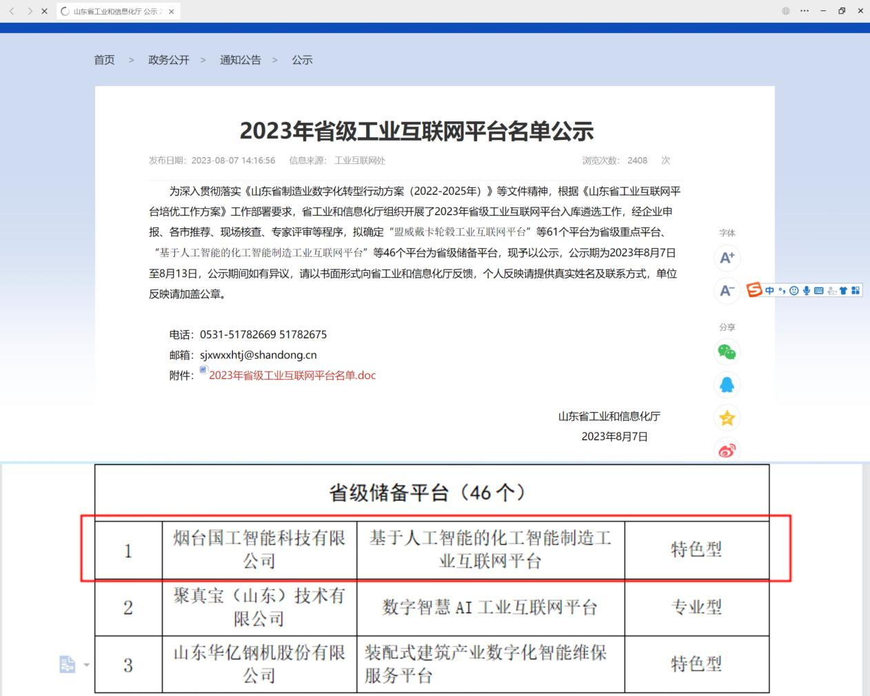 國工智能入選2023年省級工業互聯網平臺